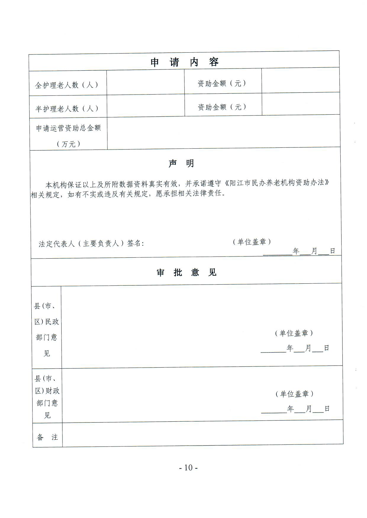 陽江市民政局 陽江市財政局關于印發《陽江市民辦養老機構資助辦法》的通知