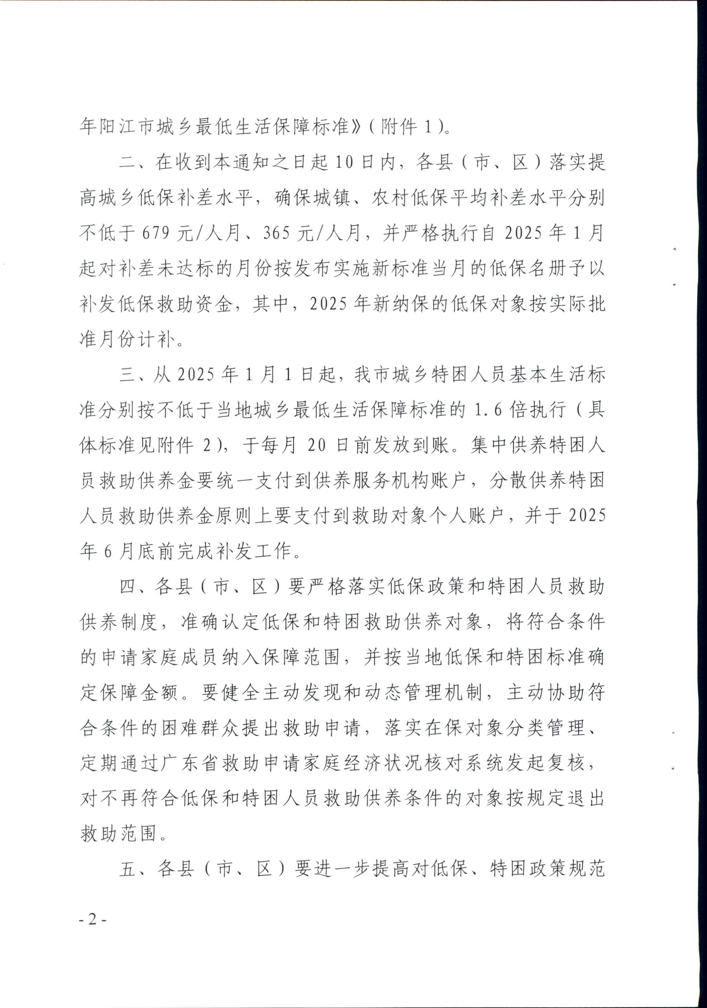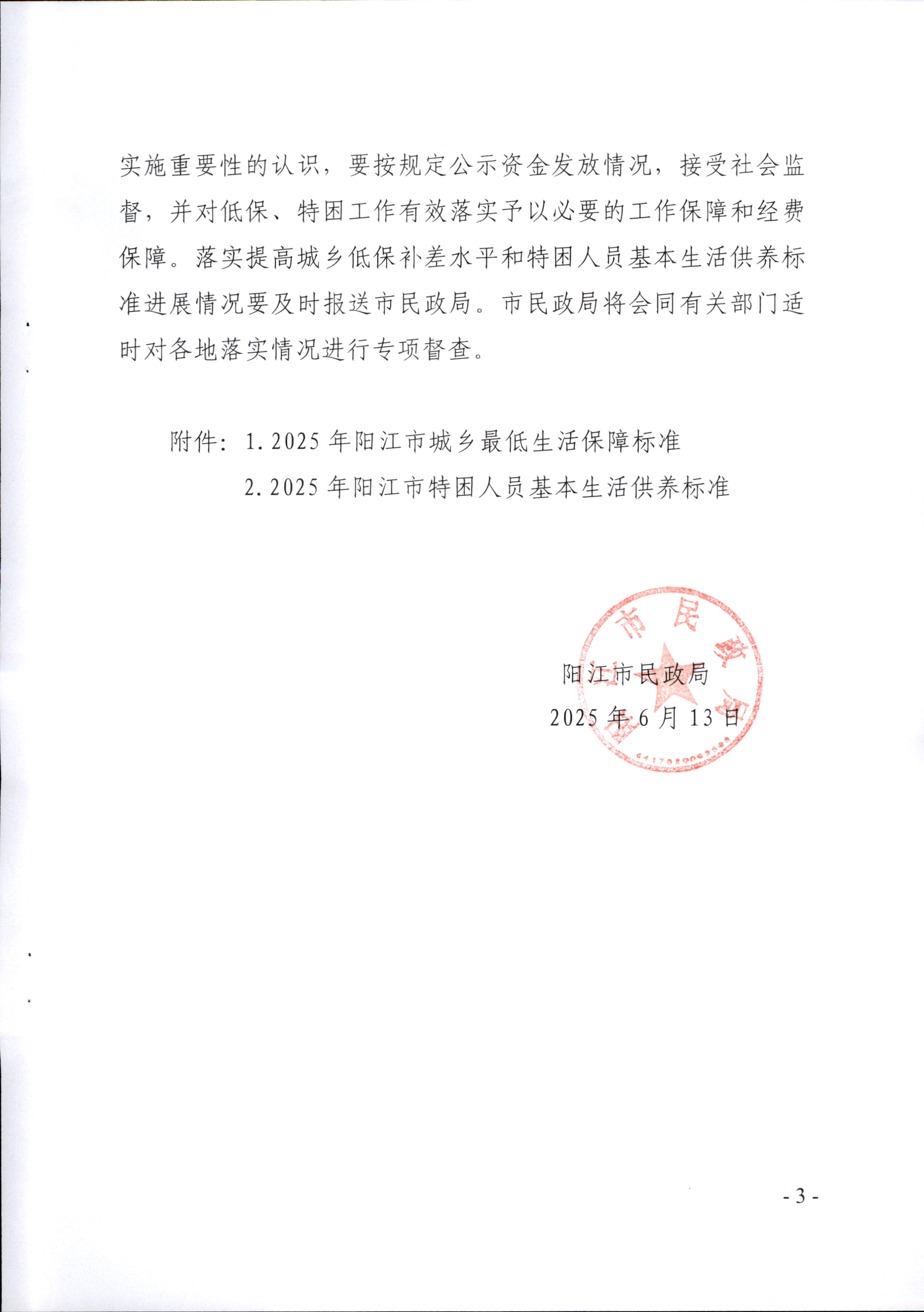 陽江市民政局關(guān)于印發(fā)2025年陽江市城鄉(xiāng)低保最低標(biāo)準(zhǔn)及特困人員供養(yǎng)標(biāo)準(zhǔn)的通知