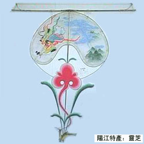 陽江扎制的風箏,種類繁多,有龍類、板子類、軟翅類、硬翅類、筒子類、串類、復線操作類等,不但放飛效果良好,而且形神兼備,具有極高的實用價值、欣賞價值和收藏價值。 “靈芝”風箏被評為世界十絕,“百足”風箏長可達100多米。陽江現已在鴛鴦湖公園內建有風箏陳列館。