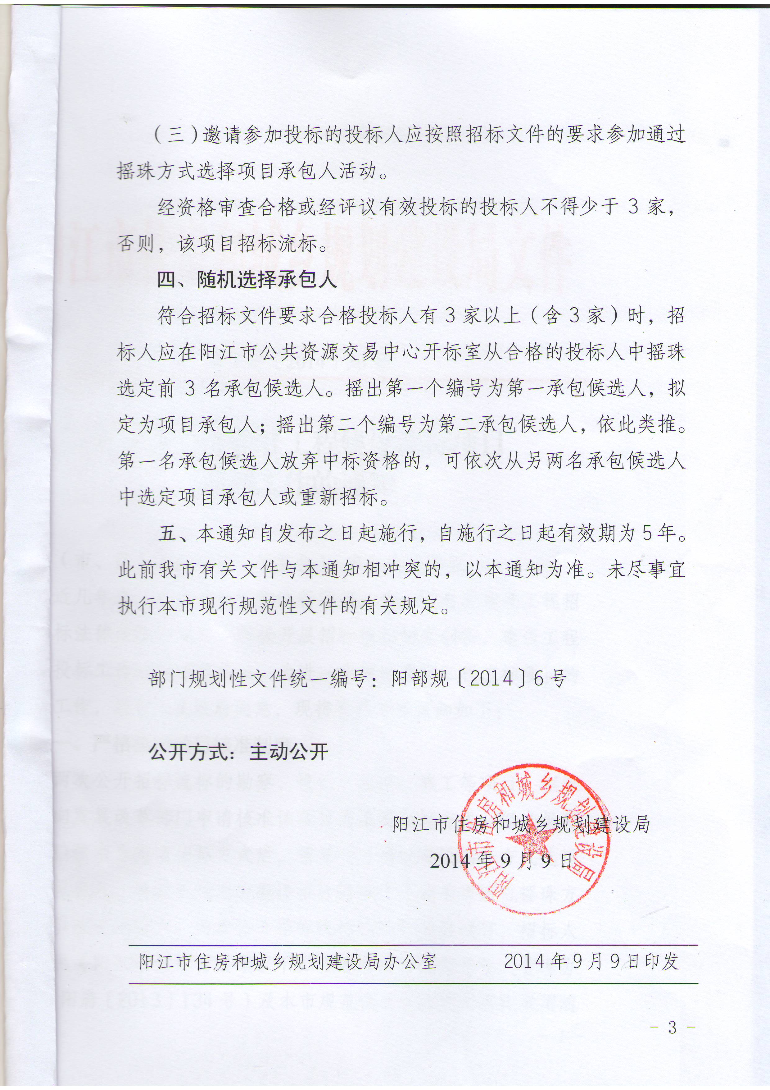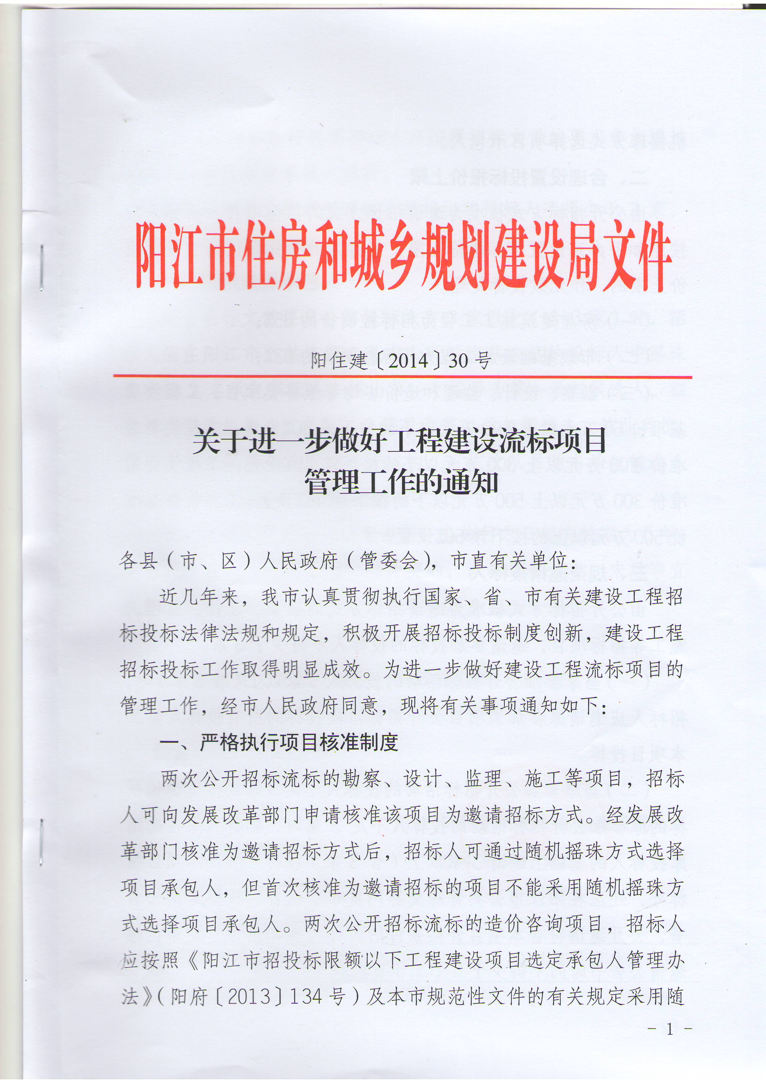 關于進一步做好工程建設流標項目管理工作的通知(陽住建【2014】30號)