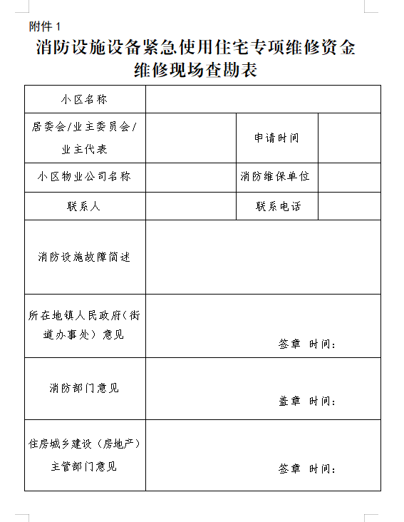 附件:1.消防設施設備緊急使用住宅專項維修資金維修現場查勘表