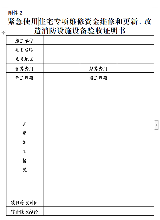 2.緊急使用住宅專項維修資金維修和更新、改造消防設施設備驗收證明書