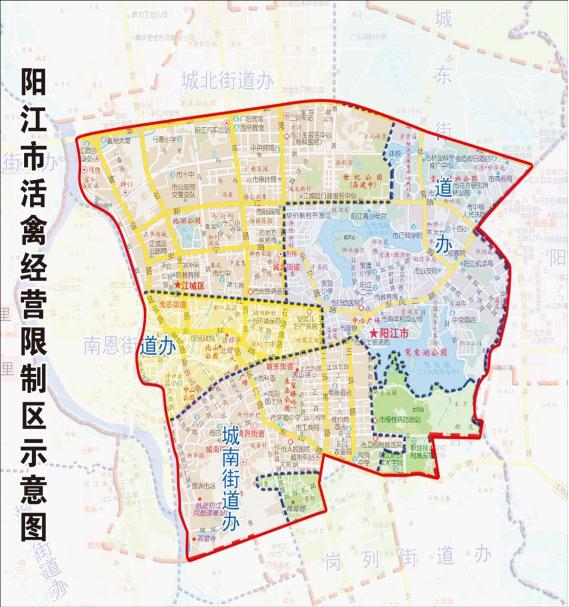 一、陽江市家禽“集中屠宰、冷鏈配送、生鮮上市”工作實施階段延長至2022年12月31日,陽江市江城區的人口密集區域納入活禽經營限制區范圍,逐步實行家禽“集中屠宰、冷鏈配送、生鮮上市”。具體經營限制區范圍如下:觀光北路與金山路交匯處往南沿漠陽江河邊(沿線經過觀光北路、觀光南路、河堤路、埠尾路、新港路)→新港路與富康路交匯處往東→富康路與江南路交匯處往北→江南路與江臺路交匯處往東→江城區與陽東區行政界線往北→江城區與陽東區行政界線與金山路交匯處往西→金山路與觀光北路交匯處的區域。(具體的經營限制區詳見示意圖)