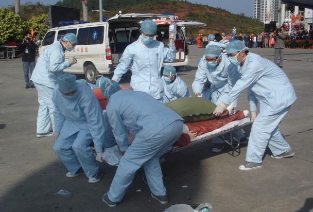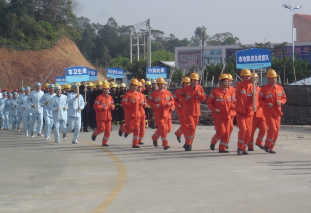 參與地震應急救援演練的各單位救援人員逼真地上演了一場驚心動魄應急救援行動,圓滿完成了規定的科目演練任務。演練活動是以假想的我市南邊鎮新湖村發生5級地震后,震區房屋倒塌,人員傷亡。設在市地震應急指揮中心的指揮部立即啟動地震應急預案,指揮調度各路救援人員進入震區抗震救災。演練共分為十一個實戰科目,模擬地震發生后出現的各種緊急情況下的救援工作程序:疏散人員、搶救被困人員、傷員急救與運送及衛生防疫、消防滅火、維護震區治安、安置災民、供電地震災后搶修復電、燃氣搶修、架設臨時通信、搶修供水管道、搶修交通要道。
