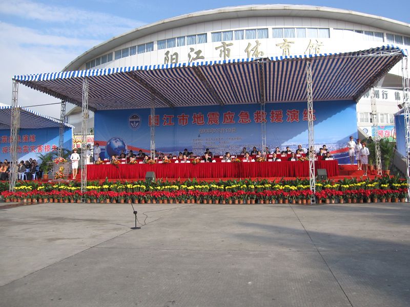 2009年12月16日陽江1969年6.4級地震40周年紀念暨地震應急救援演練活動在市體育館南門廣場舉行。中國地震局震災應急救援司副司長、廣東省地震局主要領導、分管領導以及市人大、市政府、市政協有關領導出席活動。全省各地市地震部門領導、市直單位領導等共600多人參加活動。