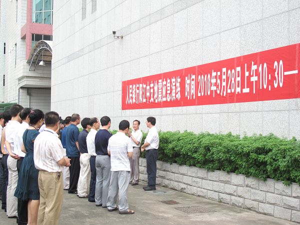 根據《2010年我市防震減災宣傳教育工作要點》,為更好地開展“防震減災宣傳活動周”系列活動,提高機關單位人員的防震減災意識和應對地震災害事件的能力,5月28日,市人民銀行舉行了地震應急疏散演練,參加演練人員達100多人。市應急辦主任、市地震局主要領導到場觀摩指導,并作講話。