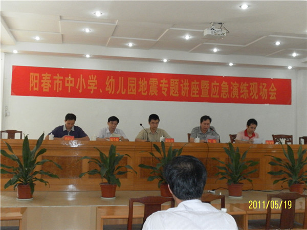 根據“陽江市5.12防震減災宣傳周”活動部署,2011年5月19日,陽春舉行中小學、幼兒園防震減災主題教育活動。這次活動在陽春第四中學舉行。陽春地震局、教育局、應急辦、團委等部門領導、各中小學校和幼兒園代表等200多人參加活動。陽江市地震局主要領導蒞臨現場指導。