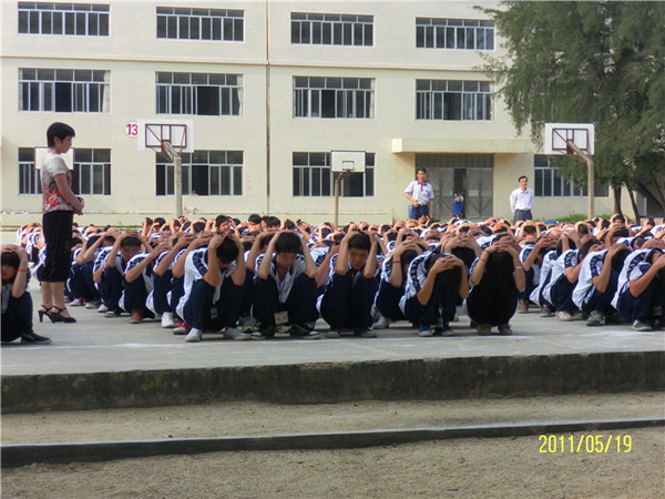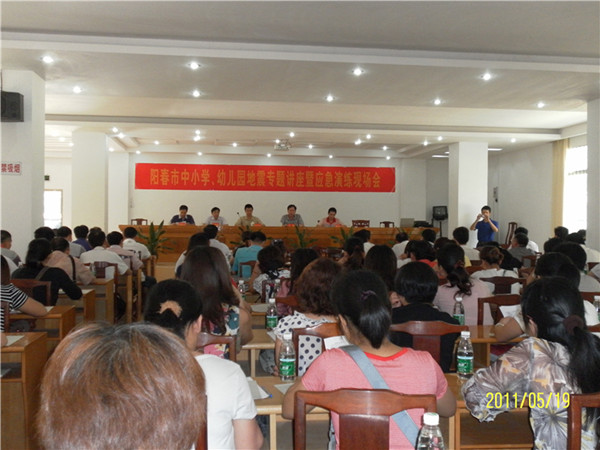 活動分為地震知識科普專題講座和地震應急避險演練兩部分進行。首先由陽江市地震局專業(yè)人員舉行地震科普專題講座,通過多媒體以翔實的數據和生動形象的語言向全校師生闡述了地震的原理及其造成的災害,海嘯的發(fā)生原理及其危害,剖析了從汶川地震中得到的啟示和留給我們的深刻教訓,重點講解了防震減災知識、自救互救技能知識。講座結束后,陽春四中初一、初二兩級師生1000多人開展地震應急避險演練。隨著 “地震警報”信號發(fā)出,上課的老師立即停止講課,指揮學生迅速保護頭部,躲在課桌旁邊。1分鐘后,“地震警報”信號解除,學生們在老師的組織下,快速有序地沿樓梯兩側疏散到學校操場。通過演練,使師生進一步熟悉了應急避險知識,提高了地震應急避險能力。