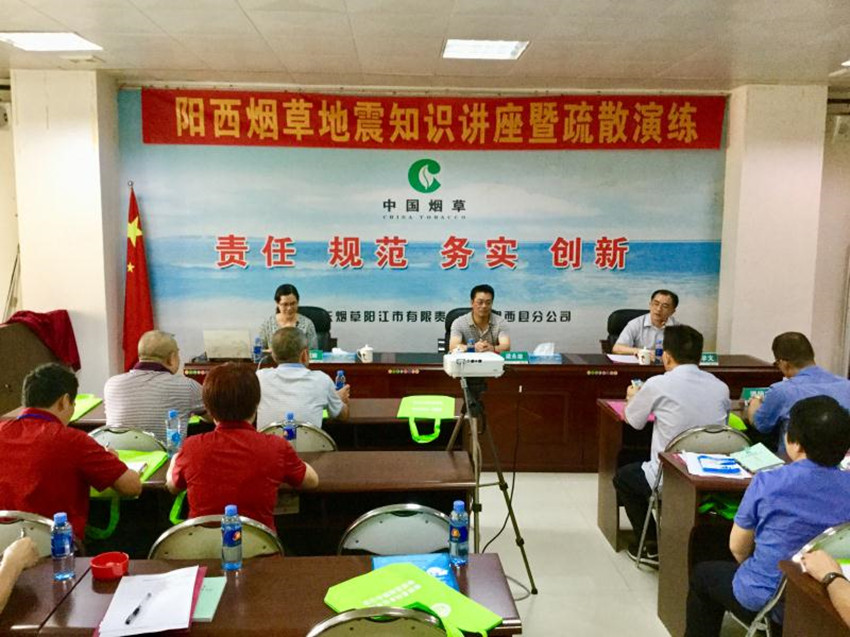 陽西縣科技局指導陽西縣煙草專賣局舉行地震科普 知識講座暨地震應急演練活動